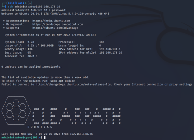 of the robot does not change these default credentials, an attacker can try to access the machine by using these