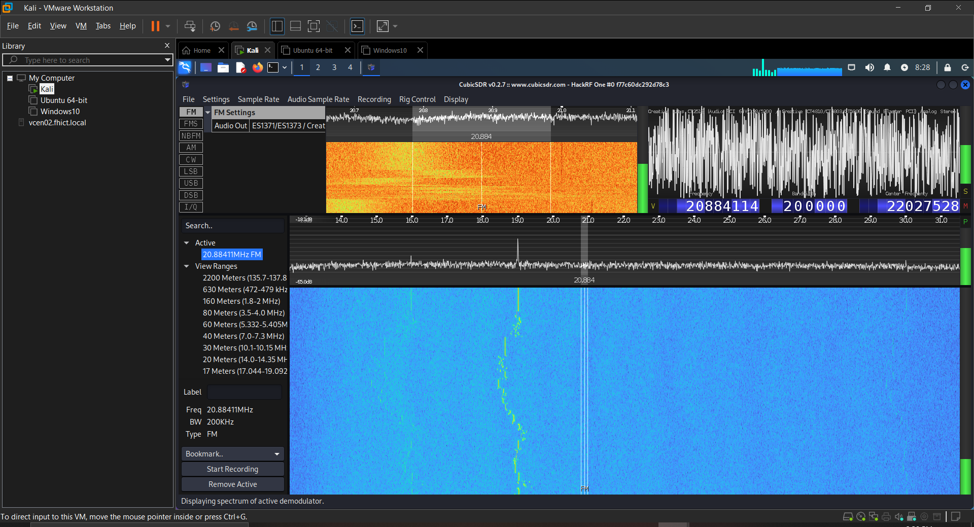Radio frequency scanning is applied on the Clearpath Jackal robot during a pentest. As can be seen in the image below, the radio communication between the robot and the controller were intercepted, and can be analyzed.