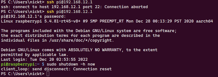 credentials through SSH. With admin permissions, the linux command "poweroff" was initiated, and the robot shut